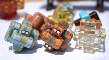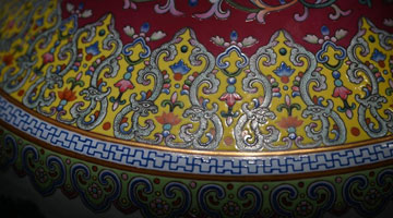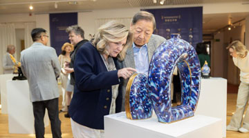 6月19日,观众参观由傣族錾刻工艺制作的银编錾刻系列配饰《云中之城》。