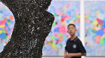 7月2日在展览现场拍摄的陈世英作品“美梦花园”。