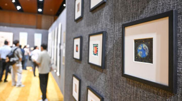 7月2日在展览现场拍摄的陈世英作品“悟蝉知翠”。