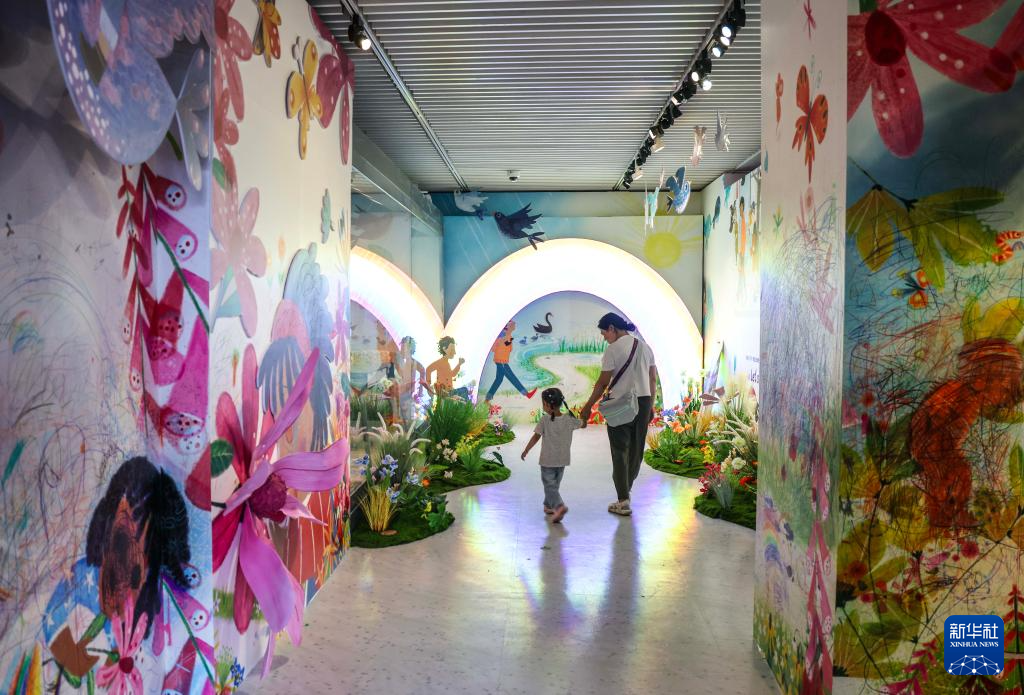 7月4日 ,参观者在“牛津话绘本世界沉浸式互动体验”展览上参观。