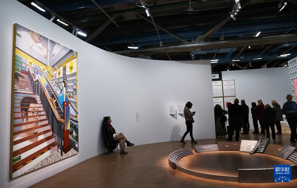 10月8日,媒体记者在法国巴黎蓬皮杜中心参观中国当代艺术家群展《目:中国境象》。
