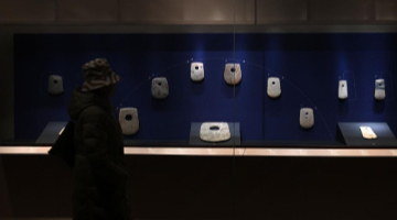 北京站候车大厅内悬挂的名家名画(12月18日摄)。