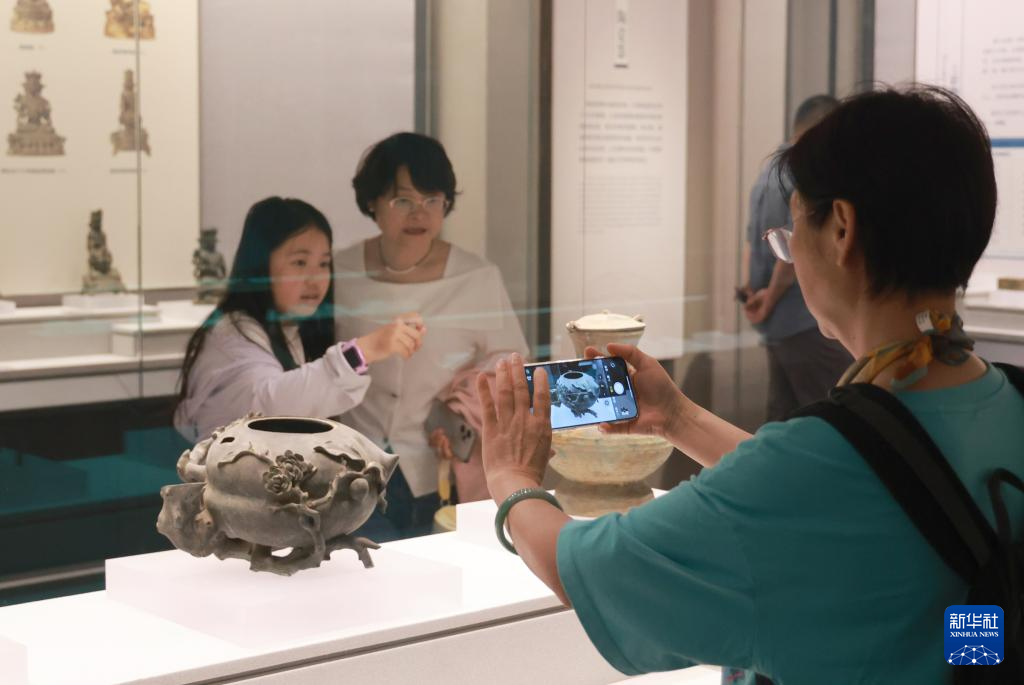 5月18日,游客在山东省青州博物馆参观展出的文物。