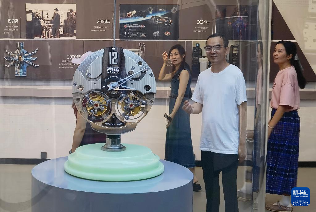 5月17日,游客在船山钟表博物馆内的产品展销区参观。