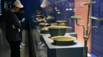 5月31日,在湖北省襄阳市昭明台广场举行的《楚辞》特种邮票首发式上,工作人员展示《楚辞》特种邮票。