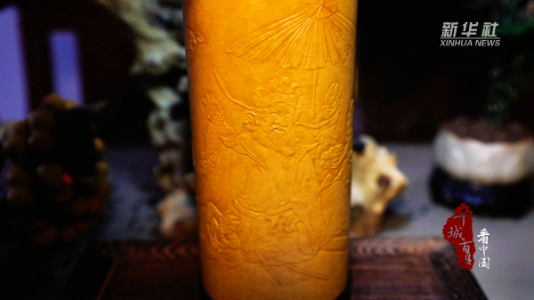 葫芦砑花又称“押花”,起源于清代,以砑、压、挤、按等手法,在不破坏葫芦表皮的前提下,塑造出凹凸有致的浮雕图案。作品精美且能长久保存,具有独特的艺术价值。
