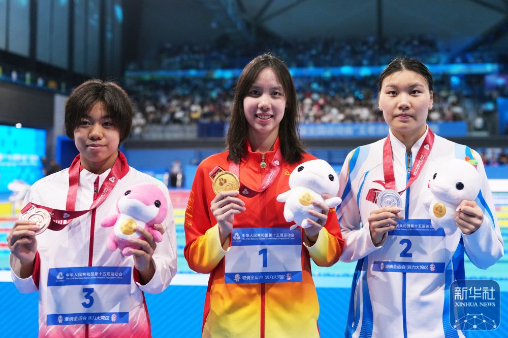11月16日,在深圳举行的第十五届全国运动会游泳女子200米仰泳决赛中,湖北队选手彭旭玮获得冠军,浙江队选手柳雅欣和天津队选手杨偌熙分别获得亚军和季军。
