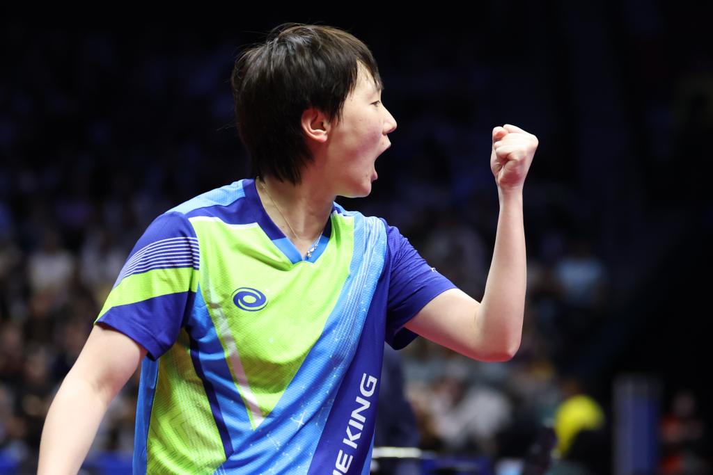 两人3:3开局,首局行至局中战成6平,之后孙颖莎拉大比分,11:7先下一城。次局,王曼昱一路领先,11:8扳平局分。第三局,两人几度战平,手握两个局点的孙颖莎被王曼昱连追4分,输掉该局。第四局战至2平后,王曼昱连得6分,孙颖莎连追2分试图止住颓势,但失误增多,王曼昱11:4再拿一局。