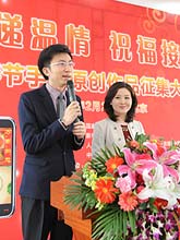 (2)彩信:圖片內(nèi)容契合活動主題,格調(diào)健康向上。手機(jī)上傳彩信大小在50K以內(nèi),128×128像素或160×120像素;互聯(lián)網(wǎng)上傳電子賀卡大小500K以內(nèi)。