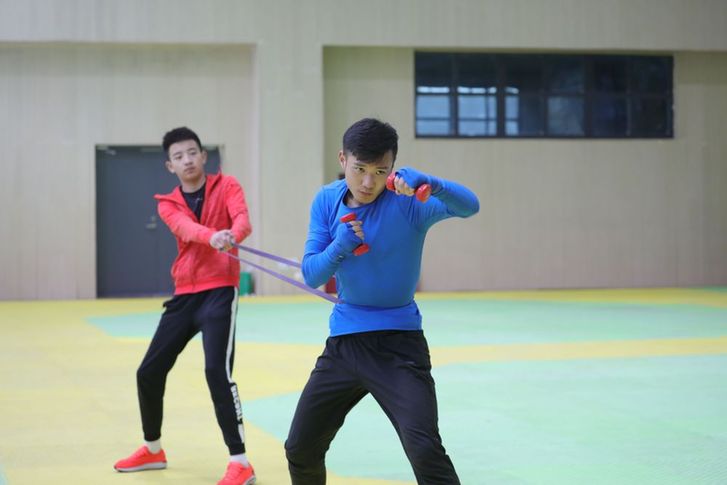 “通過啞鈴鍛煉肩部耐力,腳腕綁沙袋練習移動速度,用杠鈴加強出拳力量和爆發力,配合手靶全面練習。因為是從零開始,要想拿到成績,必須付出成倍的努力。”趙佳偉說。