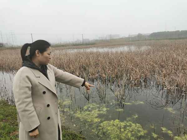 ↑在大房郢水庫邊,鳳陽小崗村水源地環保科技有限公司負責人宋進介紹種植的沉水植物。新華社記者 姜剛 攝