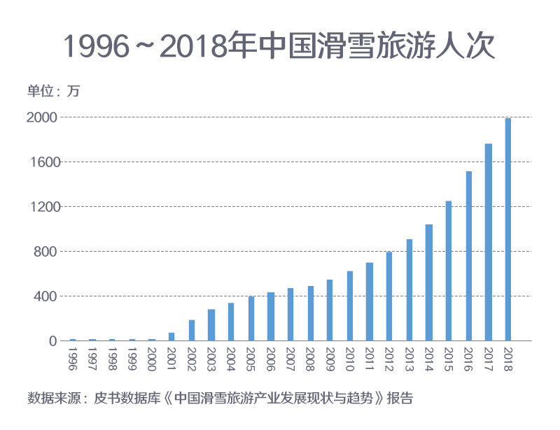 ??? 從1996年發(fā)展至今, 我國滑雪旅游人次實(shí)現(xiàn)了質(zhì)的飛躍。截至2018年底, 我國滑雪人次為1970萬, 同比增長12.57%?;邶嫶蟮幕┤舜魏褪袌鲆?guī)模,中國已被認(rèn)為是全球主要滑雪市場之一,年滑雪人次已超過一些擁有成熟滑雪市場的國家。