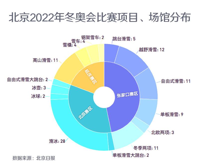 北京冬奧會設(shè)有北京、延慶和張家口三個賽區(qū),共計劃使用25個場館,其中直接用于賽事的競賽場館12個。