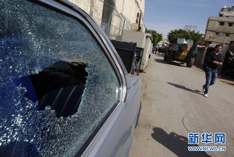 3月23日,黎巴嫩首都貝魯特槍戰現場受損汽車。