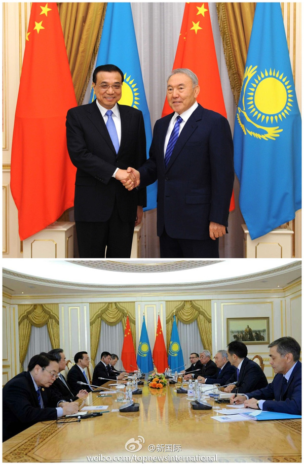 ????新華網北京12月15日電? 據新華社“新國際”微博報道,哈薩克斯坦總統納扎爾巴耶夫一般不在周末會客??墒菫榱藲g迎遠道而來的中國總理,他打破了自己的慣例,于當地時間14日(周日)下午5點,在阿斯塔納總統府三層金廳高規格接待了首次訪哈的李克強總理,兩人同聲傳譯足足談了一個半小時。