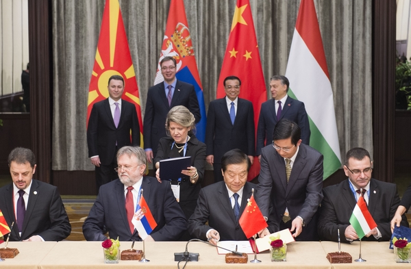 ????17日上午,中國、匈牙利、塞爾維亞、馬其頓四國總理共同見證了合作建設中歐陸海快線北段匈塞鐵路的諒解備忘錄和通關便利化協議的簽署,為中歐陸海快線的建設奠定了重要基礎。