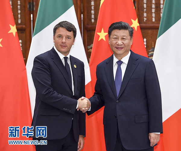 習近平歡迎倫齊來華出席二十國集團領導人杭州峰會。習近平指出,近年來,中意關系取得長足進步,雙方秉承相互尊重、互利共贏精神,深化政治互信,擴大務實合作,使兩國人民獲得實實在在的利益。中方愿同意方攜手努力,不斷推進兩國全面戰(zhàn)略伙伴關系向前發(fā)展。我們要堅持兩國戰(zhàn)略互信大方向,尊重彼此核心利益和重大關切,密切兩國政府、議會、政黨交流合作。要堅持互利共贏原則,優(yōu)勢互補,實現(xiàn)共同發(fā)展。中方歡迎意方積極參與“一帶一路”建設。我們要以古老文明為依托,密切人文交流,深化傳統(tǒng)友誼。要加強在國際和地區(qū)事務中的協(xié)調(diào)和配合,努力構建以合作共贏為核心的新型國際關系。要將中歐和平、增長、改革、文明四大伙伴關系落到實處,共同維護中歐關系良好發(fā)展勢頭。