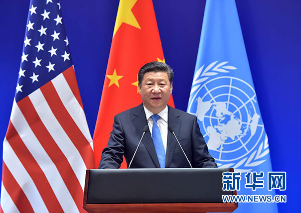 習(xí)近平強調(diào),中國是最大的發(fā)展中國家,美國是最大的發(fā)達國家,兩國在氣候變化領(lǐng)域開展了卓有成效的對話和合作。兩國共同交存參加《巴黎協(xié)定》法律文書,展示了共同應(yīng)對全球性問題的雄心和決心。國際社會應(yīng)該以落實《巴黎協(xié)定》為契機,加倍努力,不斷加強和完善全球治理體系,創(chuàng)新應(yīng)對氣候變化路徑,推動《巴黎協(xié)定》早日生效和全面落實。我們要堅持共同但有區(qū)別的責(zé)任原則、公平原則、各自能力原則,按照巴黎大會授權(quán),穩(wěn)步推進后續(xù)談判,有效應(yīng)對氣候變化挑戰(zhàn)。發(fā)達國家要履行承諾,提供資金技術(shù)支持,增強發(fā)展中國家應(yīng)對氣候變化能力。