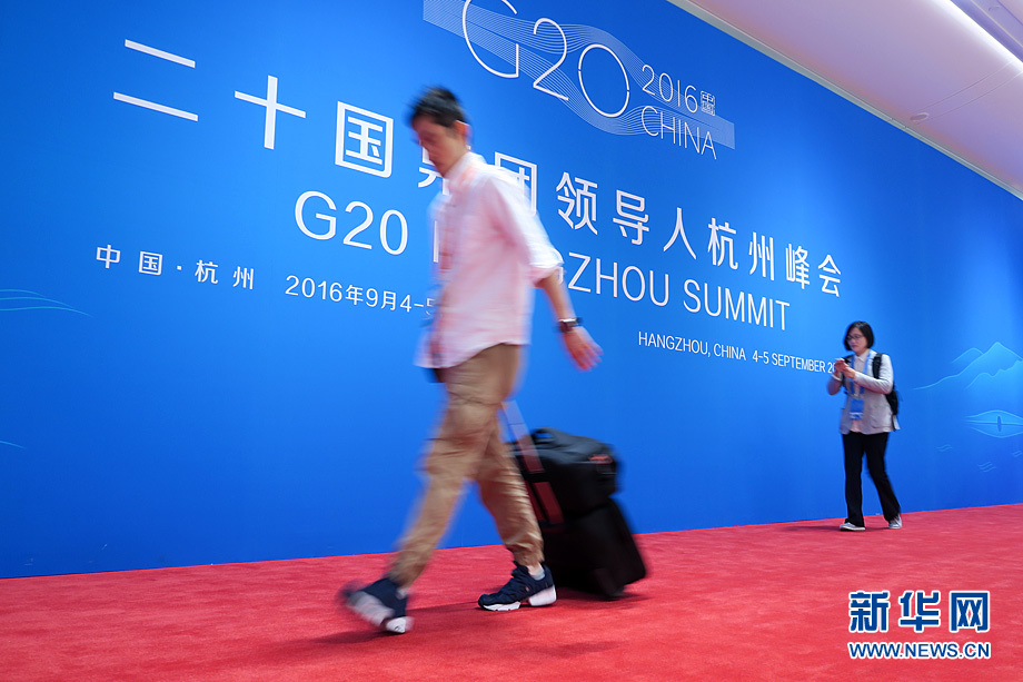 9月4日上午,金磚國家領(lǐng)導(dǎo)人非正式會晤在浙江杭州舉行。當(dāng)日,G20峰會新聞中心一派繁忙景象。新華網(wǎng)記者 陳競超 攝
