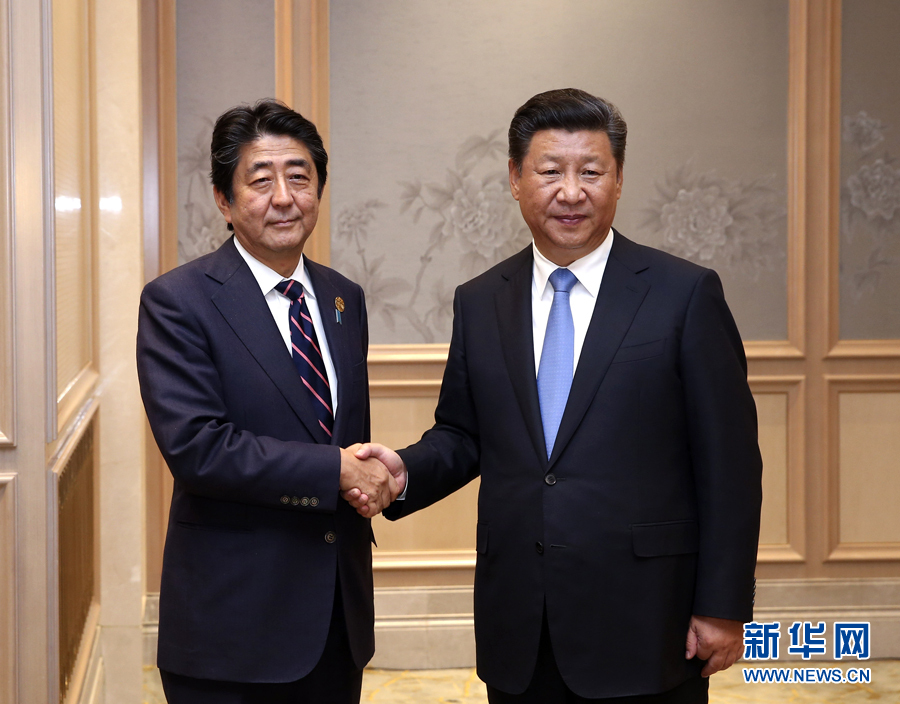 9月5日,國家主席習(xí)近平在杭州會(huì)見來華出席二十國集團(tuán)領(lǐng)導(dǎo)人峰會(huì)的日本首相安倍晉三。 新華社記者龐興雷攝