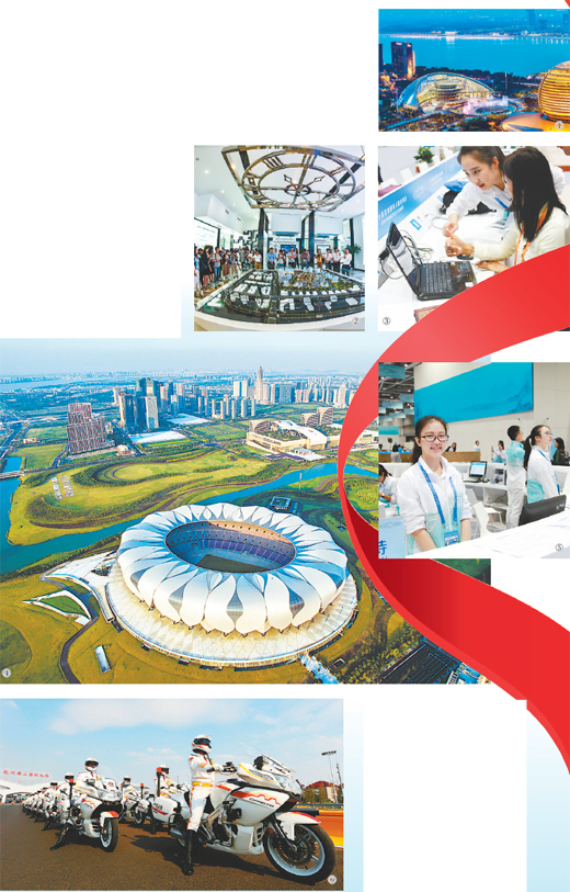 圖④:杭州國際博覽中心和杭州奧體中心主體育場。