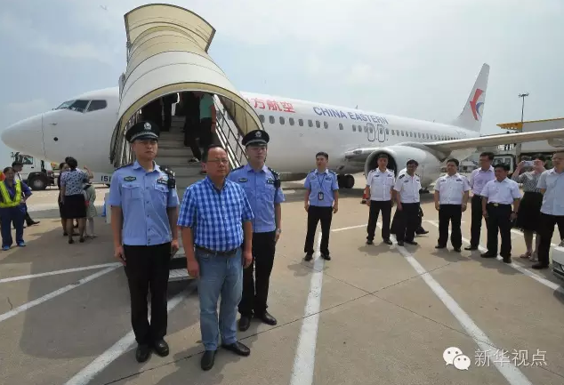 2016年7月13日,在武漢天河機場,“百名紅通人員”朱海平從美國回國投案自首。標志著“百名紅通人員”已有三分之一落網。新華社發(楊平攝)