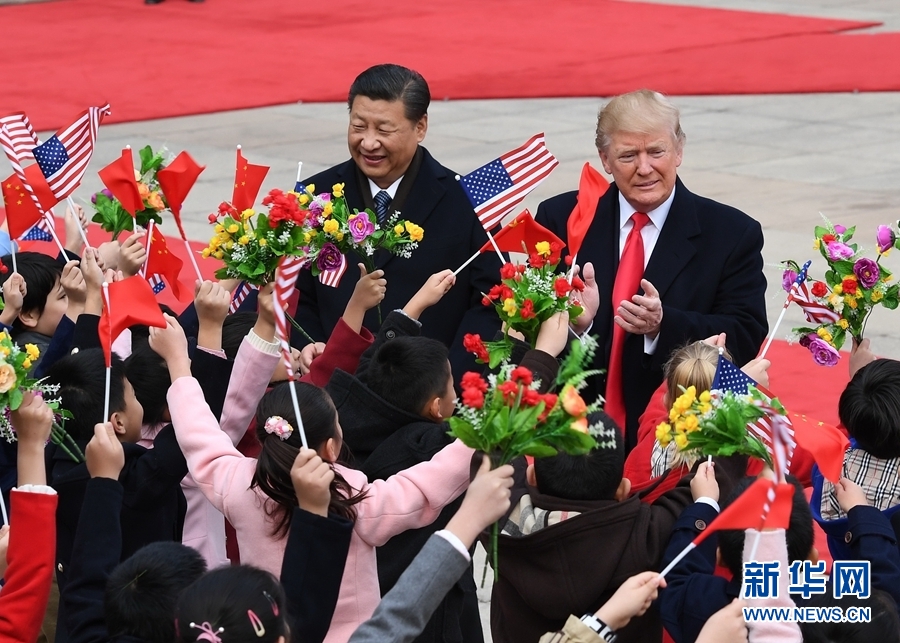 11月9日,國家主席習近平在北京人民大會堂東門外廣場舉行歡迎儀式,歡迎美利堅合眾國總統唐納德·特朗普對中國進行國事訪問。 新華社記者饒愛民 攝