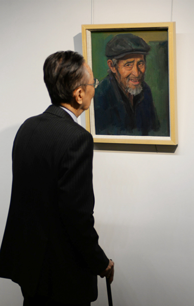 1月20日,在日本東京都美術館,一位觀眾欣賞中國藝術家油畫作品?!昂汀敶袊》彤嬚埂?0日下午在日本東京都美術館開幕。本次畫展共展出當代中國極具代表性的小幅油畫56幅,吸引眾多日本參觀者駐足欣賞。新華社記者姜俏梅攝