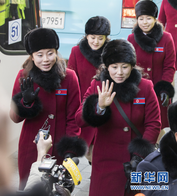 2月7日,朝鮮拉拉隊成員乘車到達韓國江原道麟蹄郡。當(dāng)日,參加平昌冬奧會的朝鮮拉拉隊、跆拳道示范團、記者團和民族奧林匹克委員會官員等一行280人經(jīng)由京義線陸路抵達韓國境內(nèi)。新華社發(fā)(李相浩攝)