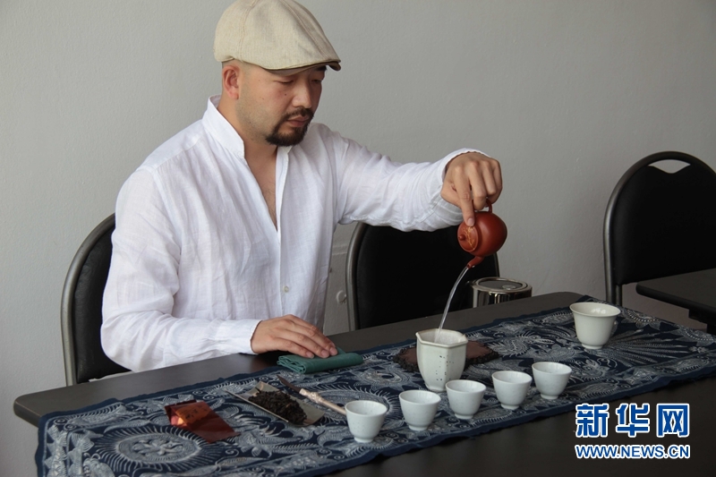 中國國家一級評茶師戎新宇在表演中國茶道。新華網發