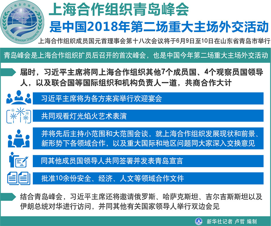 第三,注入共謀發展的新動力。青島峰會將高度重視發展問題,就完善全球治理、鞏固多邊貿易體系等問題發出響亮聲音,倡導創新、協調、綠色、開放、共享的發展理念,努力為成員國營造更加有利的外部發展環境。峰會還將通過一系列合作文件,進一步把各方政治共識轉化為合作成果。