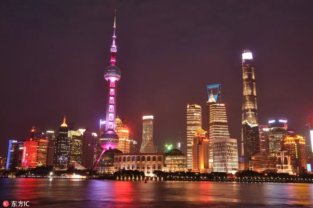 上海傍晚云層豐富,城市夜色曼妙如畫。
