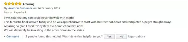 在英國亞馬遜網站《一課一練(英國版)》銷售頁面上,有讀者留言,“有人說我兒子可能無法學好數學,今天拿到這本非常具有魔力的數學書,孩子一坐下來就馬上完成了5頁,真是奇跡!我現在很高興使用了這個系列數學教材,我們一定會買其他幾本。”