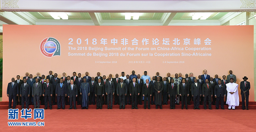 初秋的北京,天安門廣場和長安街兩旁鮮花盛開,中非合作論壇成員國國旗、非洲聯盟會旗和印有中非合作論壇會徽的旗幟迎風飄揚。人民大會堂北門外,禮兵分列紅地毯兩側。16時許,出席論壇峰會的外方領導人陸續抵達。習近平在北大廳熱情迎接,同他們一一親切握手,互致問候。隨后,中外領導人集體合影。