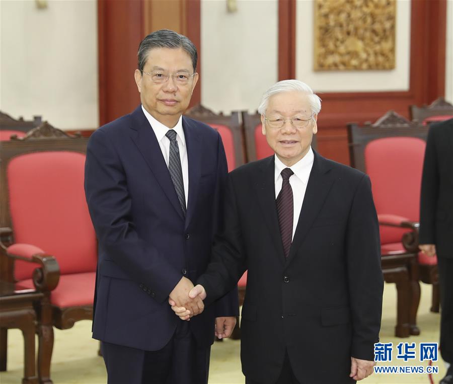 會見阮富仲時,趙樂際首先轉達了習近平總書記的親切問候。趙樂際說,在兩黨總書記親自引領下,兩黨兩國關系持續健康穩定發展。我此訪就是落實兩黨總書記達成的重要共識,按照“十六字”方針和“四好”精神,加強戰略溝通,密切高層交往,促進務實合作,推動中越全面戰略合作伙伴關系邁上新臺階。阮富仲請趙樂際轉達對習近平總書記的良好祝愿,誠摯感謝習近平總書記委托趙樂際同志代表中共中央吊唁越南國家主席陳大光。阮富仲表示,當前越中關系處于歷史最好時期,中國的發展成就不僅造福中國人民,也對越南國家發展和越中關系發展發揮重要促進作用。越方愿加強兩黨理論創新和實踐經驗交流,全面有效落實高層共識,深化各領域合作,不斷豐富越中傳統友好合作關系的時代內涵。