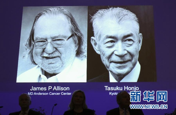 新華社斯德哥爾摩10月1日電(記者張家偉 付一鳴)瑞典卡羅琳醫學院10月1日宣布,將2018年諾貝爾生理學或醫學獎授予美國科學家詹姆斯·艾利森和日本科學家本庶佑,以表彰他們在癌癥免疫治療方面所作出的貢獻。