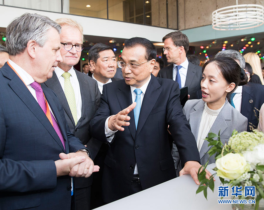 新華社海牙10月16日電(記者劉芳 王卓倫)當地時間10月16日中午,國務院總理李克強在海牙市立博物館與荷蘭首相呂特共同參觀荷蘭高新技術展并同企業家座談交流。