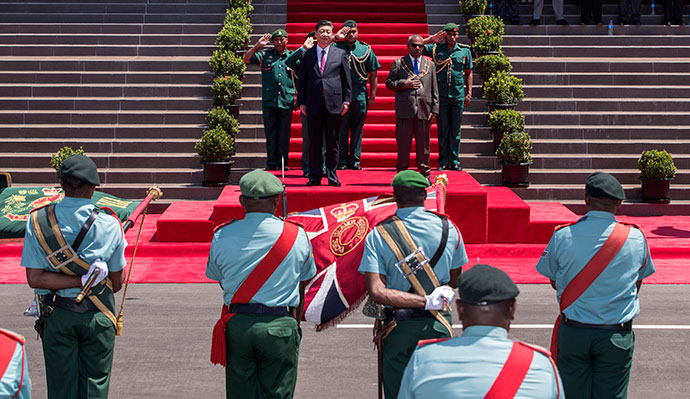 11月16日,國家主席習(xí)近平在莫爾茲比港會(huì)見巴布亞新幾內(nèi)亞總督達(dá)達(dá)埃。會(huì)見開始前,達(dá)達(dá)埃在議會(huì)大廈前廣場(chǎng)為習(xí)近平舉行隆重歡迎儀式。新華社記者 費(fèi)茂華 攝