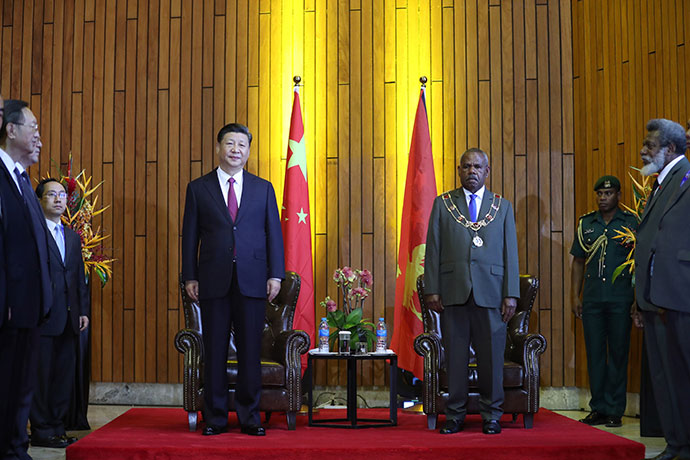 11月16日,國家主席習(xí)近平在莫爾茲比港會(huì)見巴布亞新幾內(nèi)亞總督達(dá)達(dá)埃。新華社記者 鞠鵬 攝