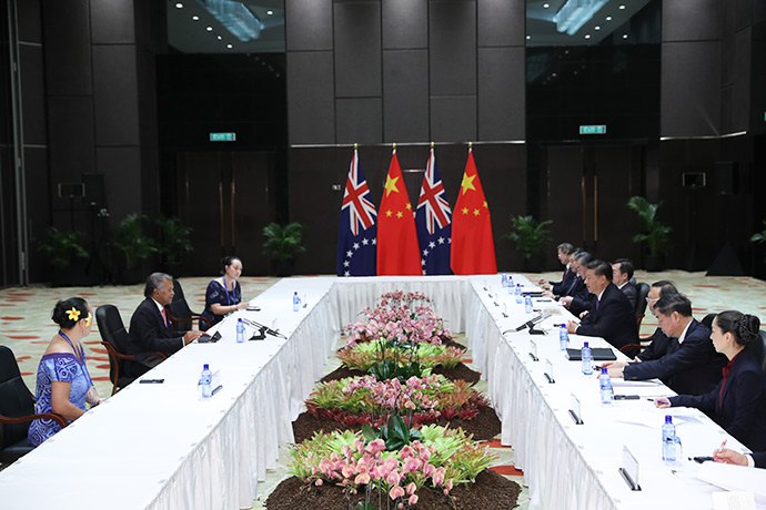 11月16日,國家主席習(xí)近平在莫爾茲比港分別會(huì)見建交太平洋島國領(lǐng)導(dǎo)人。這是習(xí)近平會(huì)見薩摩亞總理圖伊拉埃帕。新華社記者 謝環(huán)馳 攝
