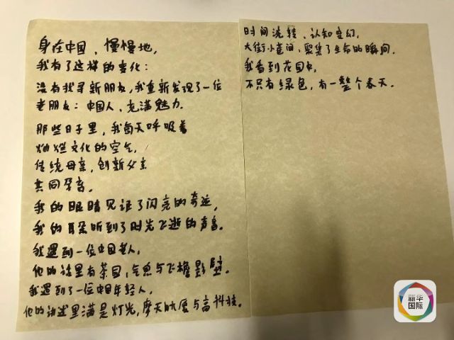 喬瓦尼寫(xiě)的中文詩(shī)。新華社記者李潔攝