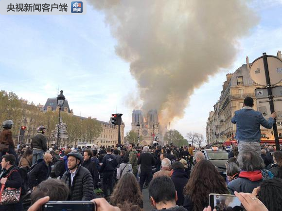 記者在圣母院附近的圣米歇爾廣場拍攝的照片,現(xiàn)場有許多民眾在此關(guān)注圣母院的火情。可以看到,圣母院的上部結(jié)構(gòu)有很大的明火,并冒出濃烈的黑煙。(央視記者 鄒合義)