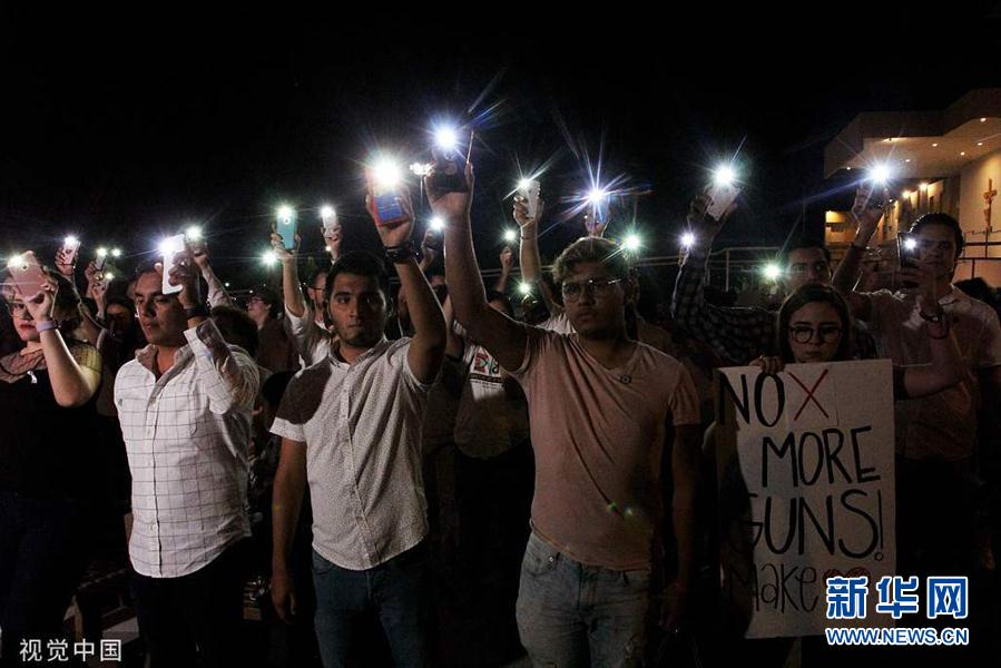 當(dāng)?shù)貢r(shí)間8月3日,美國(guó)得克薩斯州埃爾帕索,當(dāng)?shù)孛癖妳⒓邮匾够顒?dòng),悼念遇難者。當(dāng)?shù)匾患页邪l(fā)生嚴(yán)重槍擊案。據(jù)美國(guó)有線電視新聞網(wǎng)(CNN)最新消息,埃爾帕索市警察局長(zhǎng)格雷格·艾倫稱,槍擊案已造成20人死亡,26人受傷,一名來自得克薩斯州艾倫市的21歲白人男子目前已被拘捕。(圖片來源:視覺中國(guó))