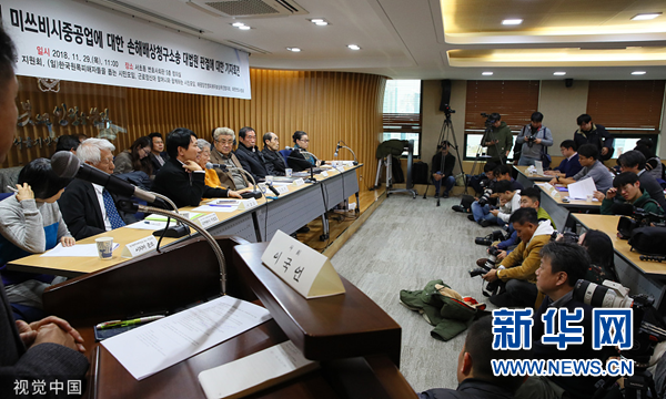2018年11月29日,韓國(guó)最高法院就日本殖民統(tǒng)治朝鮮半島期間被日本三菱重工強(qiáng)征的原勞工遺屬,以及前“朝鮮女子勤勞挺身隊(duì)”隊(duì)員狀告該公司的2起索賠案作出判決,勒令日本三菱重工支付賠償。(圖片來(lái)源:視覺(jué)中國(guó))