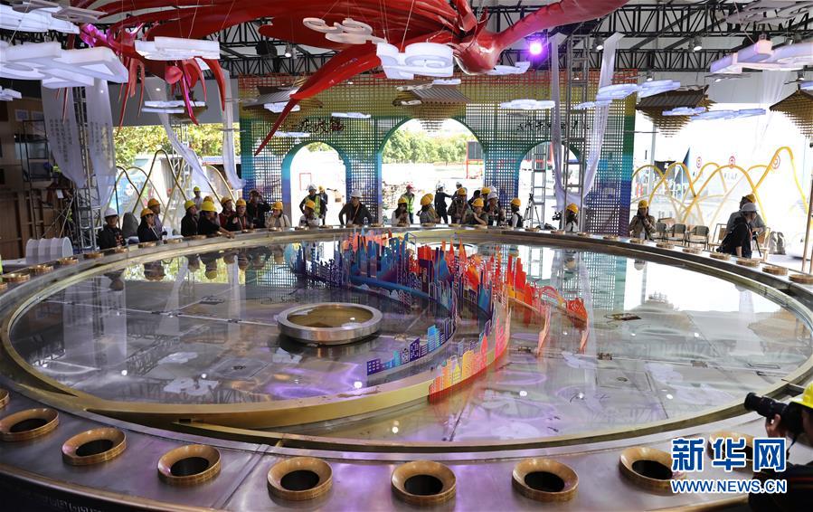 這是重慶非遺大火鍋體驗區內的大火鍋展品(11月1日攝)。 當日,非物質文化遺產展示區、汽車創新技術及自動駕駛體驗區戶外展區的整體搭建工作已近尾聲,這是第二屆中國國際進口博覽會新增展區。 新華社記者 方喆 攝