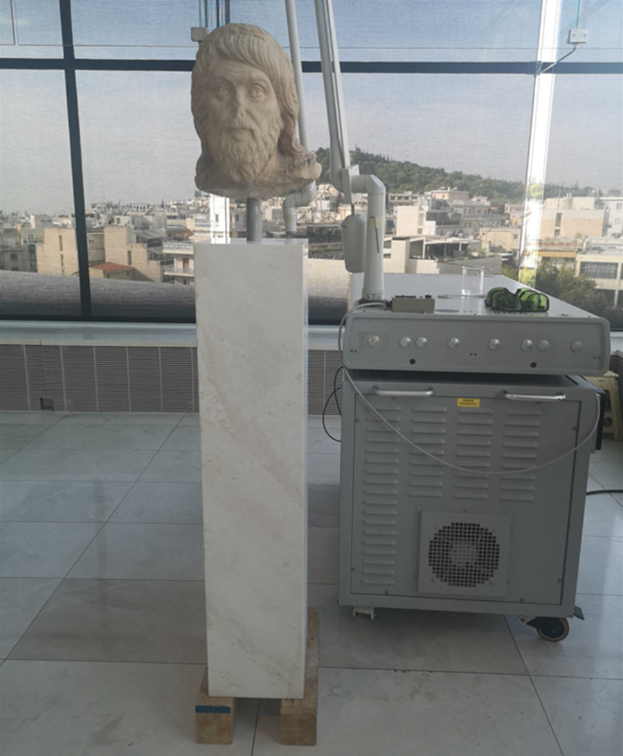 希臘方面向習(xí)主席介紹了激光文物修護技術(shù),圖為相關(guān)設(shè)備。新華社記者郝薇薇攝