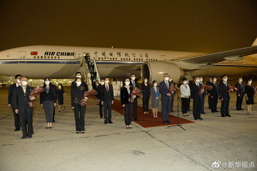 8月17日晚,中國駐休斯敦總領事館全體館員乘包機抵達北京,外交部在首都機場舉行簡短莊重迎接儀式。(記者成欣、岳月偉) ????