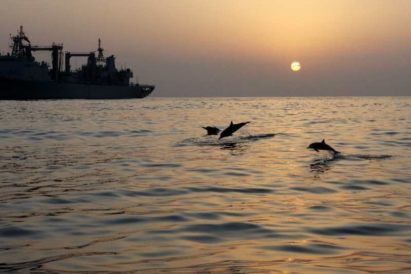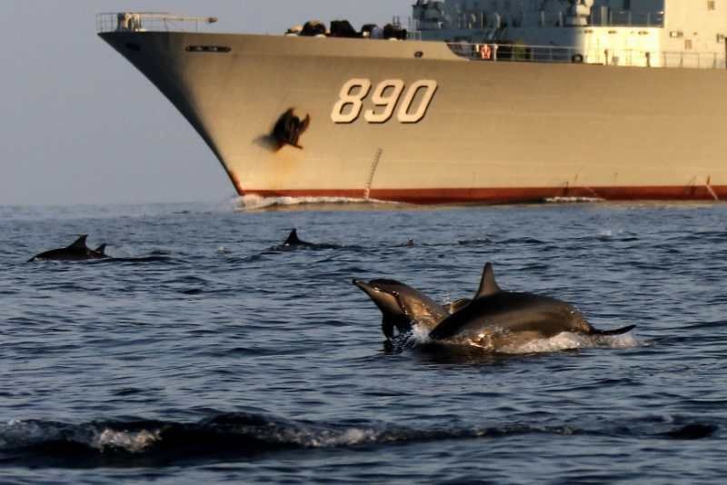 中國海軍赴亞丁灣索馬里海域護航編隊始終秉持海洋命運共同體理念,堅持人與大海和諧相處,注重生態(tài)環(huán)境保護,贏得大自然積極回報,經常出現(xiàn)編隊艦艇航行時有成群海豚伴航、待機集結時有各類魚群相伴的和諧場景。