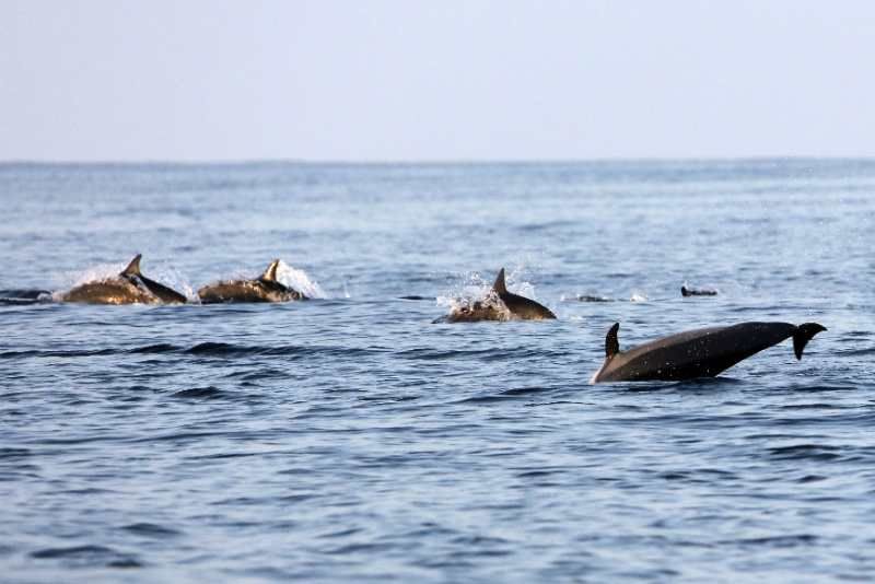 當?shù)貢r間9月5日,數(shù)百頭海豚出現(xiàn)在編隊巢湖艦艦艏海面,并跟著軍艦跳躍追逐,從下午四點多鐘開始,持續(xù)了兩個多小時才離去,為在海上連續(xù)護航130多天沒有靠港休整的海軍第35批護航官兵帶來不少輕松和快樂。