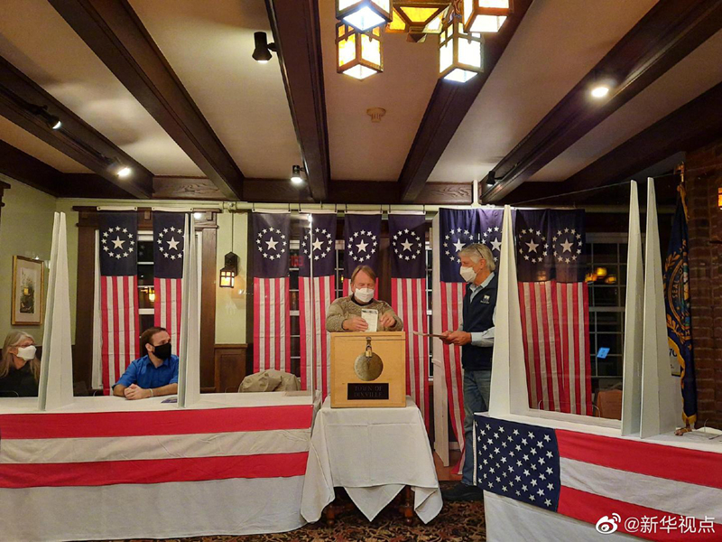 美國(guó)東部時(shí)間3日凌晨,美國(guó)東北部新罕布什爾州部分選民率先赴投票站投票,2020年美國(guó)大選選舉日投票正式開(kāi)始。